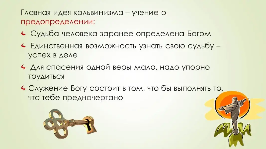Главная идея кальвинизма - учение о предопределении: