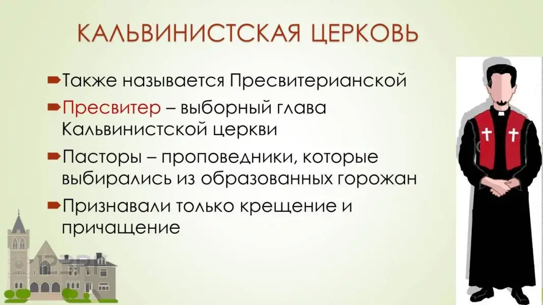 Кальвинистская церковь также называется Пресвитерианской