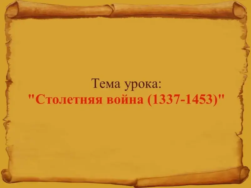 Итак, наш сегодняшний урок будет посвящен новой теме "Столетняя война (1337-1453)".