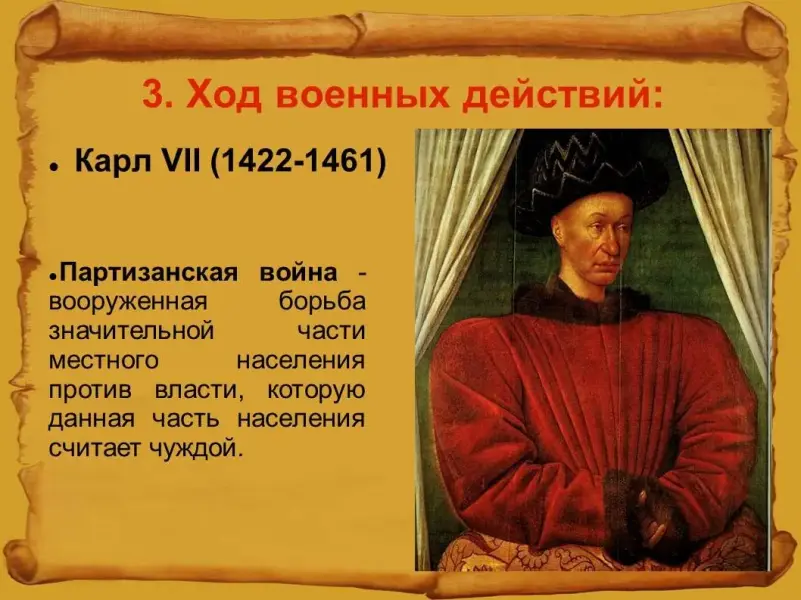 В подъеме народной борьбы против захватчиков и их изгнании большую роль сыграла Жанна д'Арк. Ей не было и 18 лет, когда она покинула родные места, чтобы участвовать в борьбе с англичанами. Наконец девушка добралась до крепости на Луаре, где находился наследник престола, и добилась встречи с ним. Придворные поняли, что ее глубокая вера в победу может поднять боевой дух войск. Поэтому Жанне выделили отряд рыцарей, который влился в войско, напралявшееся на помощь Орлеану.