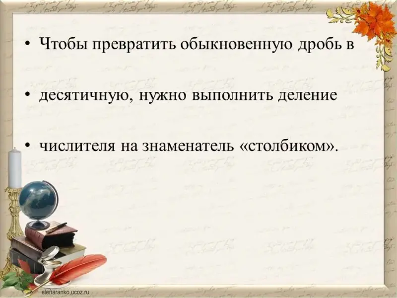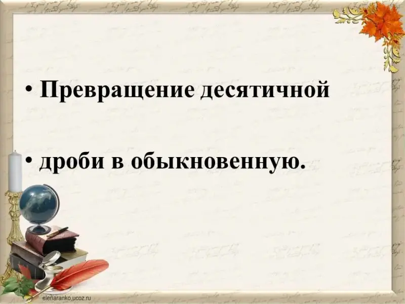 - научить переводить десятичную дробь в обыкновенную и наоборот.