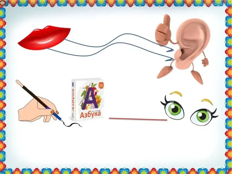Дети произносят правило: Звуки мы говорим и слышим (показывают руками рот и уши), буквы - пишем и читаем (имитируют движения).(Слайд 18).