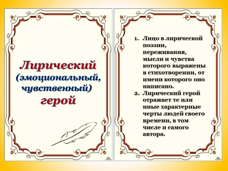 4 слайд Итак, листаем поэтический альбом... И читаем: Лирический герой - это лицо в лирической поэзии, переживания, мысли и чувства которого выражены в стихотворении, от имени которого оно написано. Лирический герой отражает те или иные характерные черты людей своего времени, в том числе и самого автора. А теперь переходим к конкурсу.