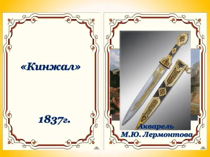 Учитель: (представление 7 чтеца-конкурсанта) "Кинжал", 1837г.