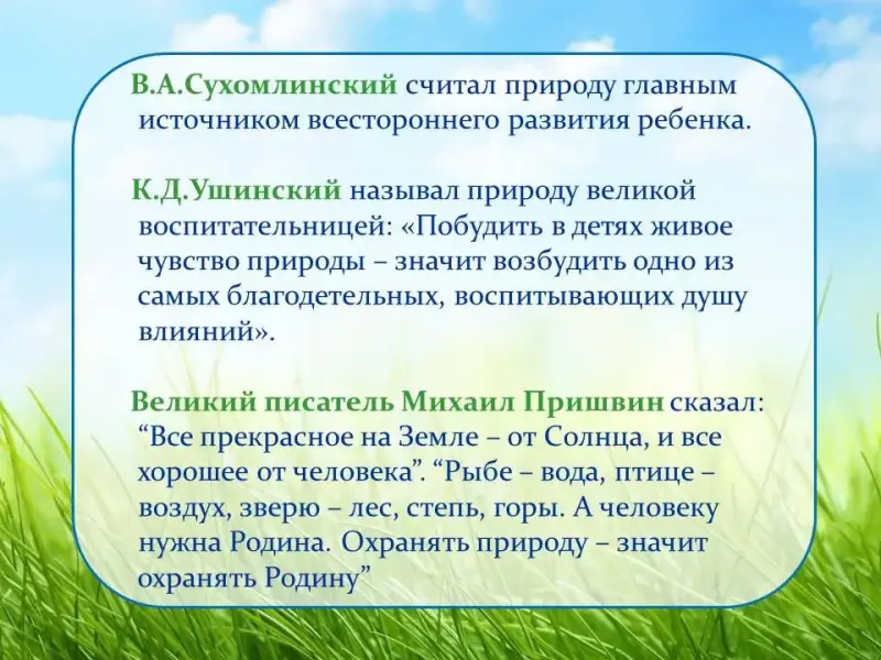 - Виноградова Н.Ф. Экологическое воспитание дошкольников: Проблемы и перспективы // Начальная школа. - 1997.