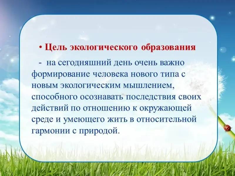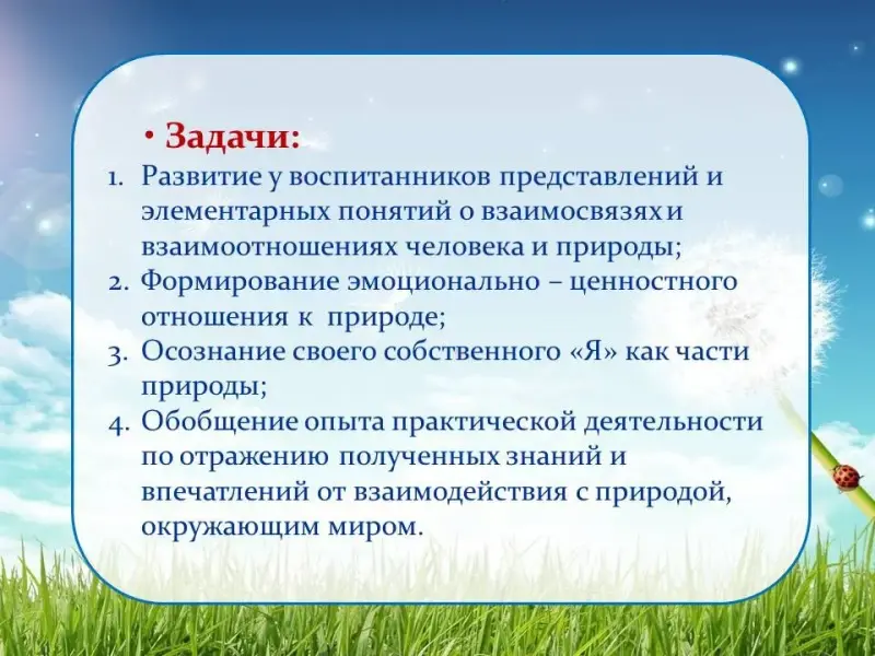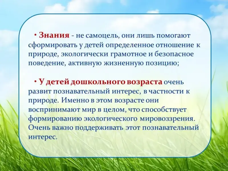 Основной целью "Экологического воспитания" является формирование основ экологической культуры всех участников педагогического процесса (детей, родителей, педагогов).