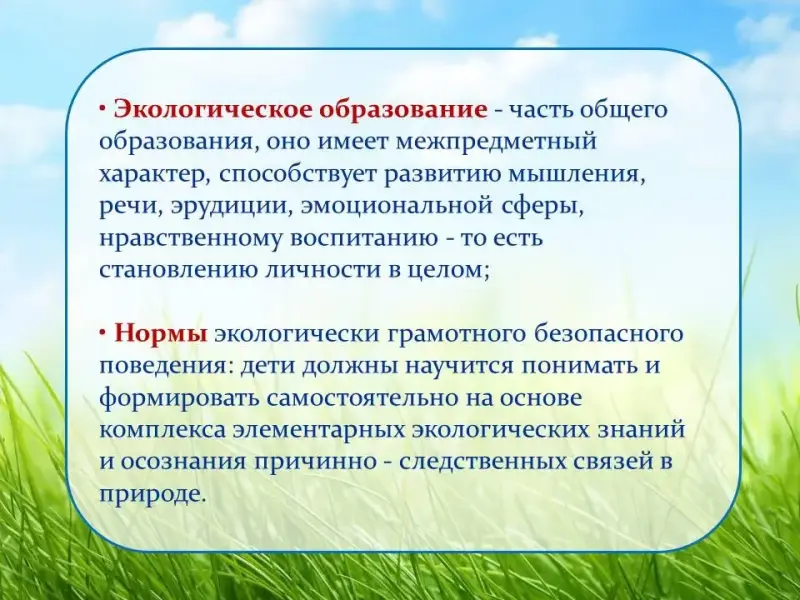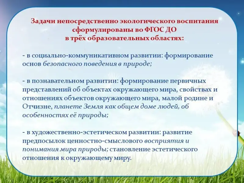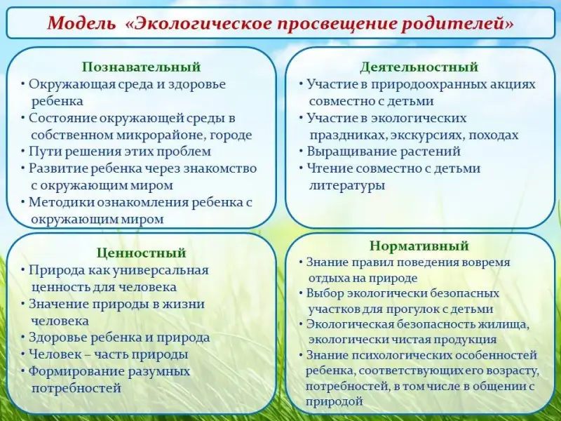 Экологическое воспитание состоит их четырёх относительно самостоятельных направлений