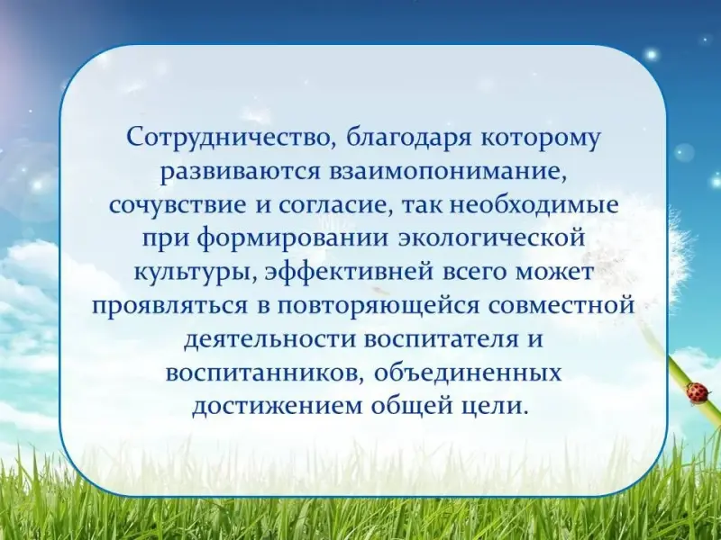 - Использование дополнительных возможностей интеграции специалистов, воспитателей, детей, родителей в работе по формированию экологической культуры;