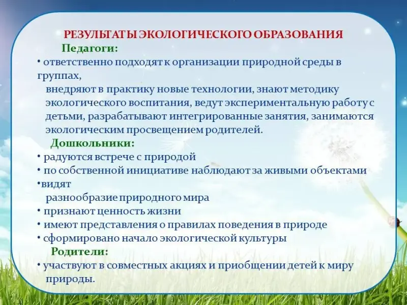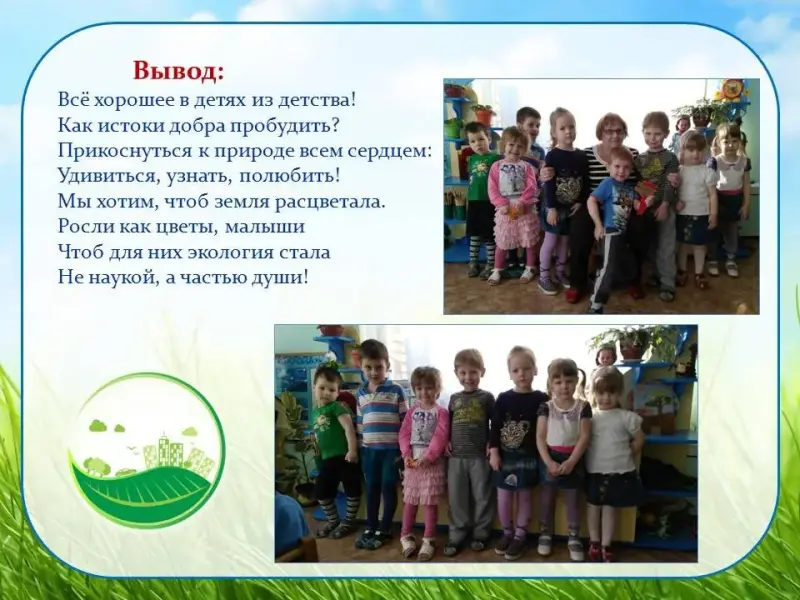 - Исследование возможности повышения уровня экологической культуры педагогов, родителей, детей;