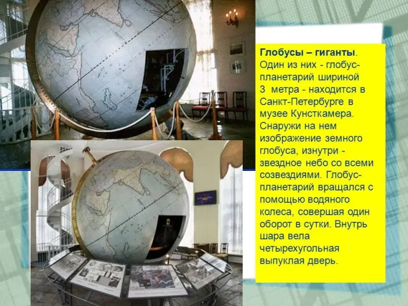 Сообщения учащихся об истории создания глобусов. Учащиеся сравнивают изображения, пытаются сформулировать заключение: что изображается на глобусе, почему создание глобуса-это шаг вперёд в истории науки, в чём преимущества и недостатки глобуса. | ||||
