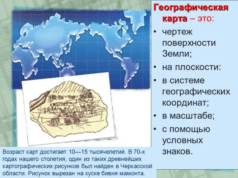 Что представляла собой старинная карта? Организация дискуссии: Почему плоскостное изображение земной поверхности было необходимо? В чём преимущества карты? В чём недостатки? Почему карты древности отличаются от тех, что висят у нас в классе и собраны в ваших атласах? |