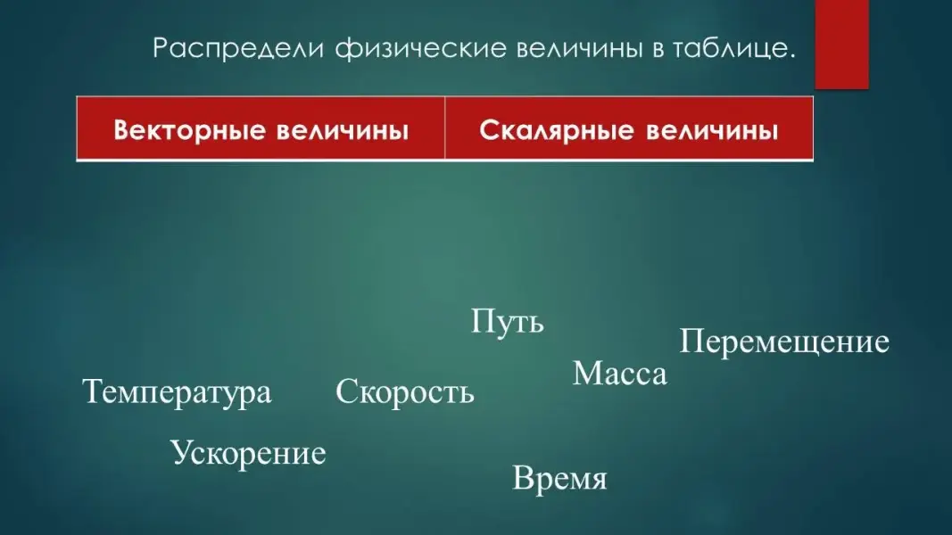 Сейчас перед вами будут появляться физические величины. Ваша задача распределить их на группы (слайд 3). Давай проверим правильность вашего ответа.