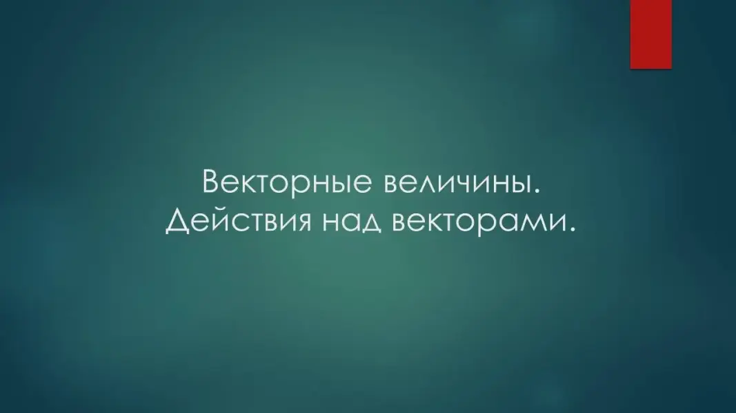 Тема урока "Векторные величины. Действия над векторами". (слайд 4).