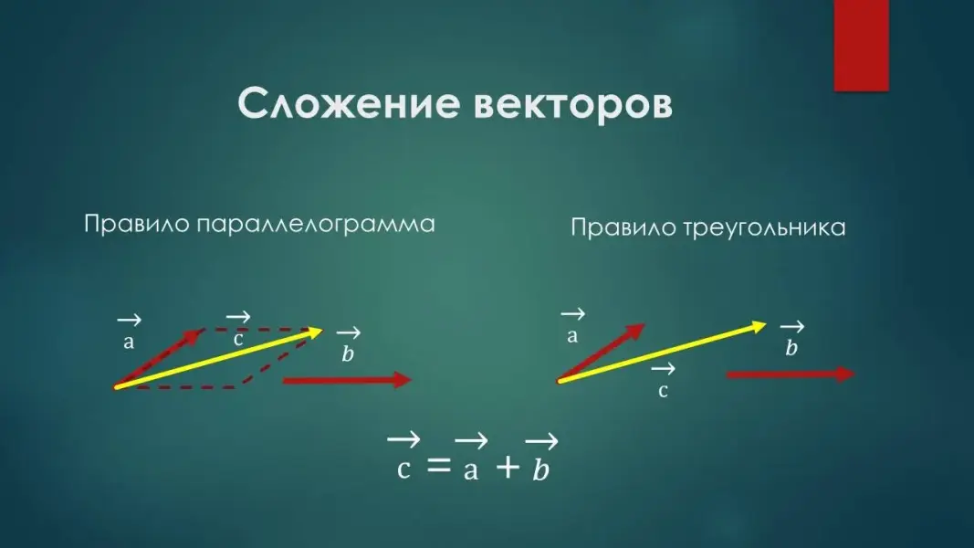 - Развивающие: развитие внимания, памяти, анализа информации, умение графически отображать сложение векторов.