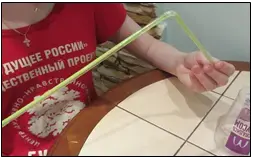 4. После этого вставить длинный конец трубочек в отверстие стакана так, чтобы короткий конец доходил до дна. (Рисунок 5)