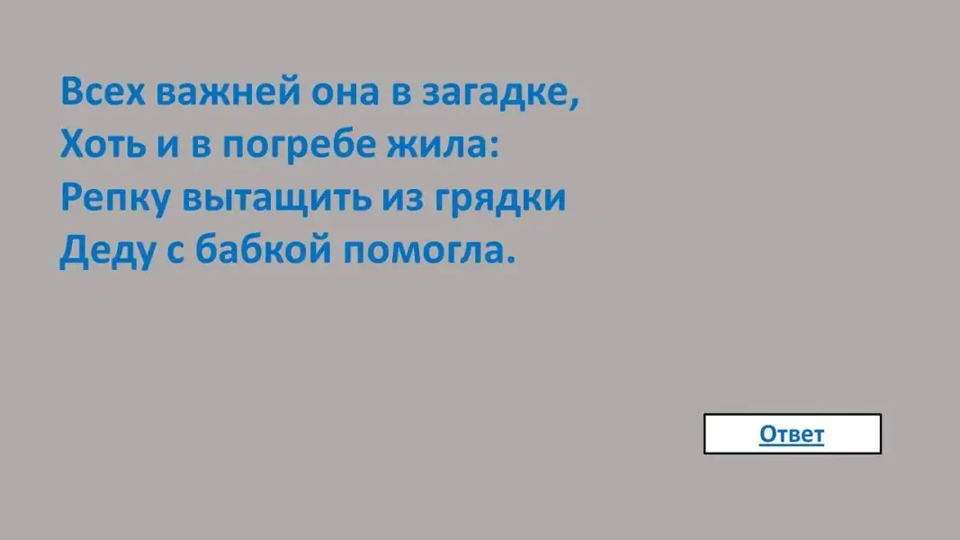 - в выбранной категории определить цифру от 1 до 5, под номером которой находится загадка;