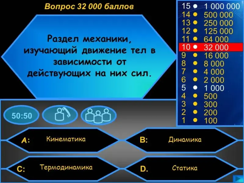 Итак, мы начинаем игру "Кто хочет стать супер-физиком"