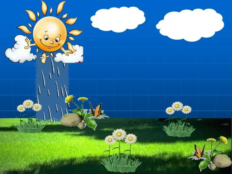 - Голубое небо. - Ласковое солнышко. - Дождевые и снеговые тучи. - Ветер. |
