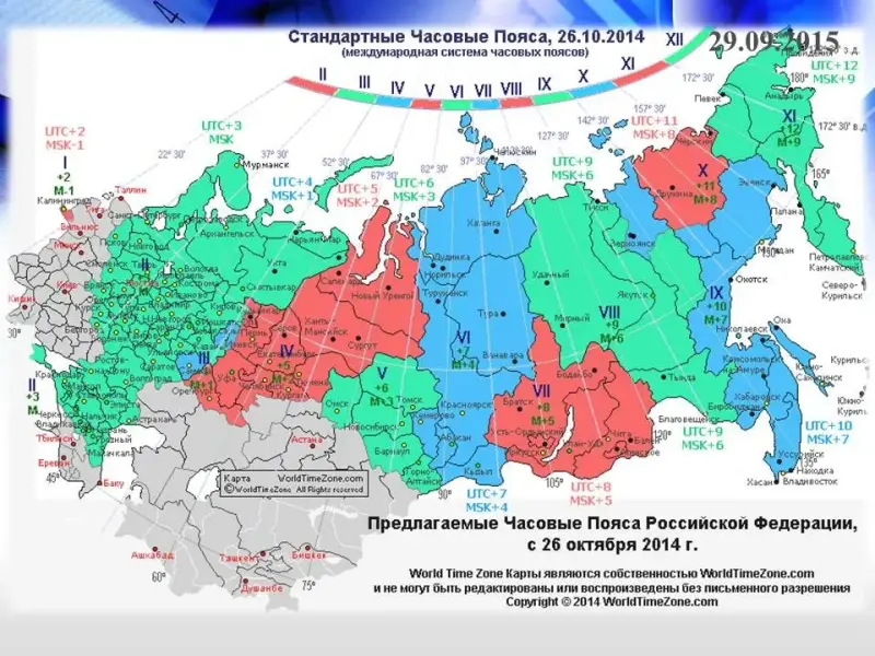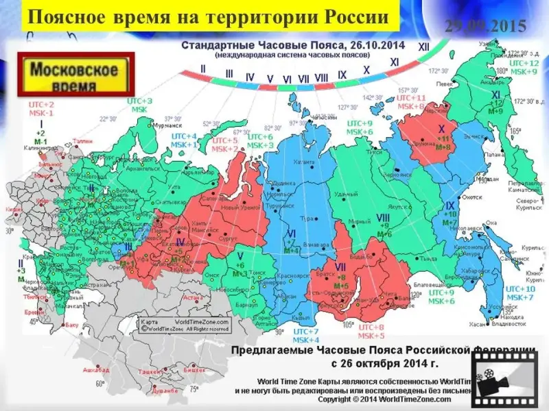Положение России во многих часовых поясах имеет определенные достоинства и недостатки.