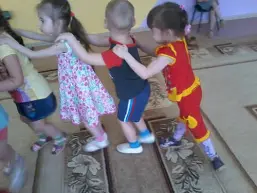 Ребёнок с диагнозом - ДЦП (средней степени тяжести, паралич нижних конечностей) пришла к нам в детский сад во II младшую группу осенью 2014 года. Воспитывается в неполной семье. Воспитанием её занимается бабушка, которая очень любит её и старается сделать всё возможное, чтобы улучшить состояние здоровья. Девочка очень редко посещала детский сад, ввиду состояния здоровья. Она не ходила, только ползала. Скромная девочка, но умеет выражать свои эмоции. Музыкальные занятия посещает с удовольствием. Сидя на стуле, уже и в младшей группе, выполняла какие - либо движения ручками. Подпевала вместе со всеми детьми. Сердце замирает, глядя на неё. Благодаря проведённой операции, осенью 2015 года она пошла! Ходит, правда, с поддержкой взрослого или опираясь на предметы. С января 2016 года с помощью воспитателя танцует в кругу со всеми детьми. Глаза её светятся от счастья, что она может выполнять движения вместе со всеми. При организации какой-либо музыкально - ритмической деятельности с детьми, довольно часто слышу от неё выражение: "А как же я?.... Вы, что, забыли про меня?" <Рисунок1>, <Рисунок2>, <Рисунок3>, <Рисунок4>, <Рисунок5>.
