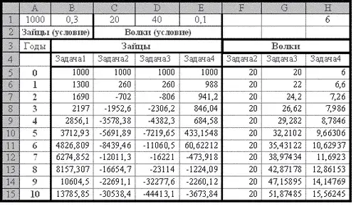 В ячейки F5, G5 присваиваем $C$1 - начальная численность волков, N30.
