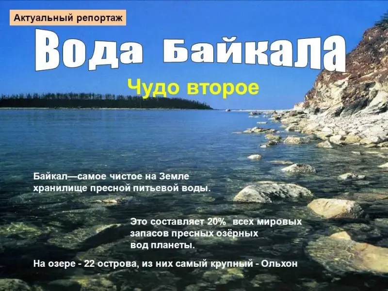 (слайд 8) Итак, слушаем "актуальный репортаж": "Слово о Байкале"