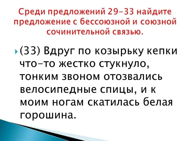 (33) Вдруг по козырьку кепки что-то жестко стукнуло, тонким звоном отозвались велосипедные спицы, и к моим ногам скатилась белая горошина.