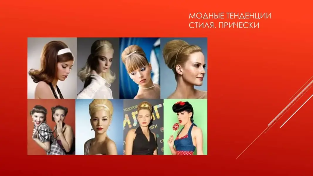 Девушки облачались в платья и юбки-солнце, обязательным атрибутом был пояс на талии, высокие прически дополняли образ. Самыми популярными принтами были клетка, горох, цветы - все то, что мы можем наблюдать и сегодня. (Презентация 2. ppt. 5, 6, 7 слайды).