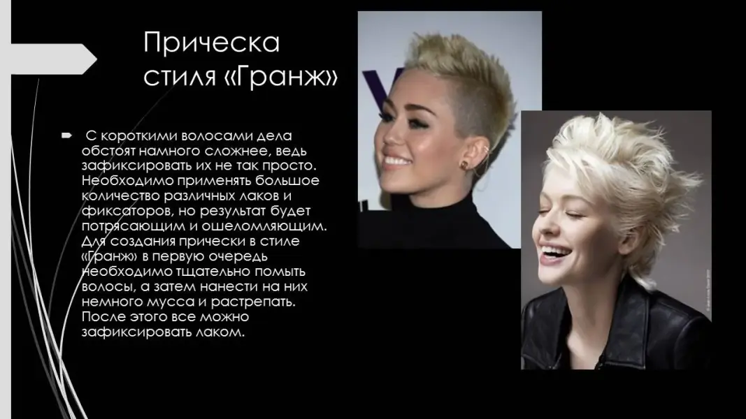- Прическа стиля "Гранж". (Презентация 5. ppt. 11, 12 слайды).