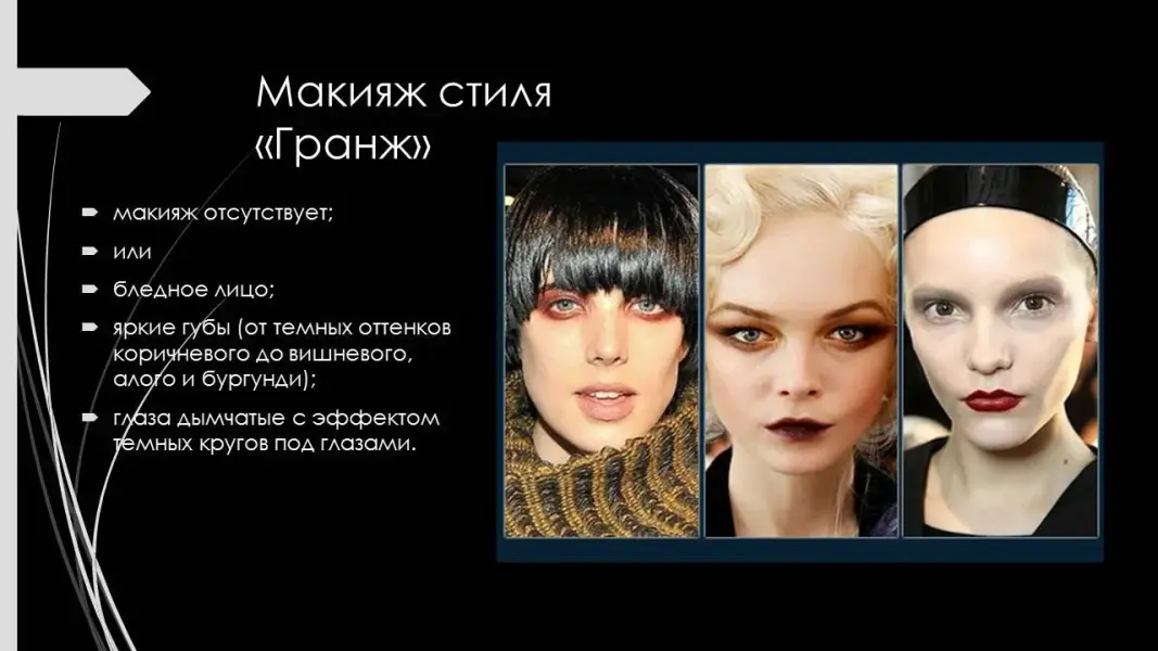 - Макияж стиля "Гранж". (Презентация 5. ppt. 13, 14 слайды).