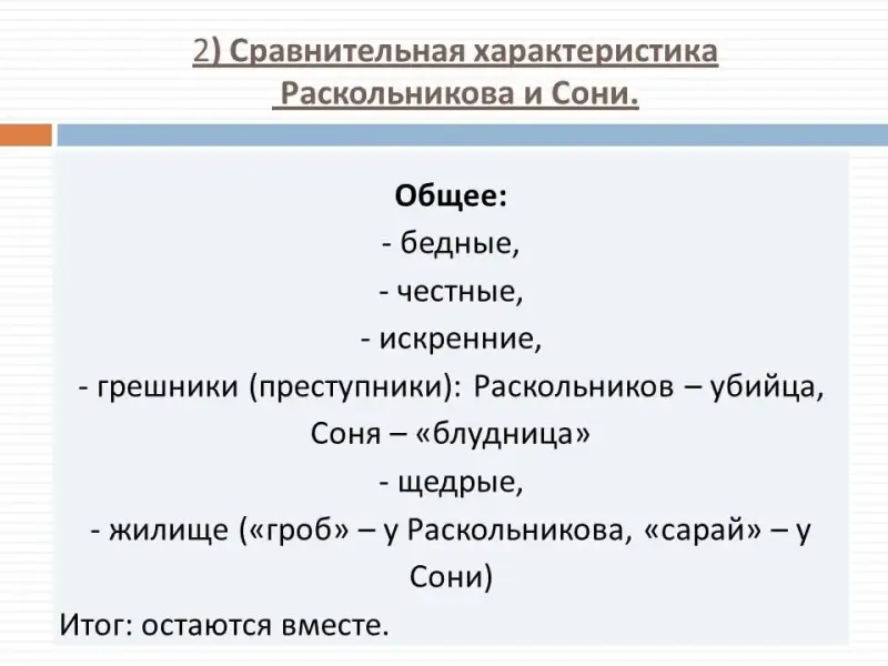 2) Сравнительная характеристика Раскольникова и Сони.