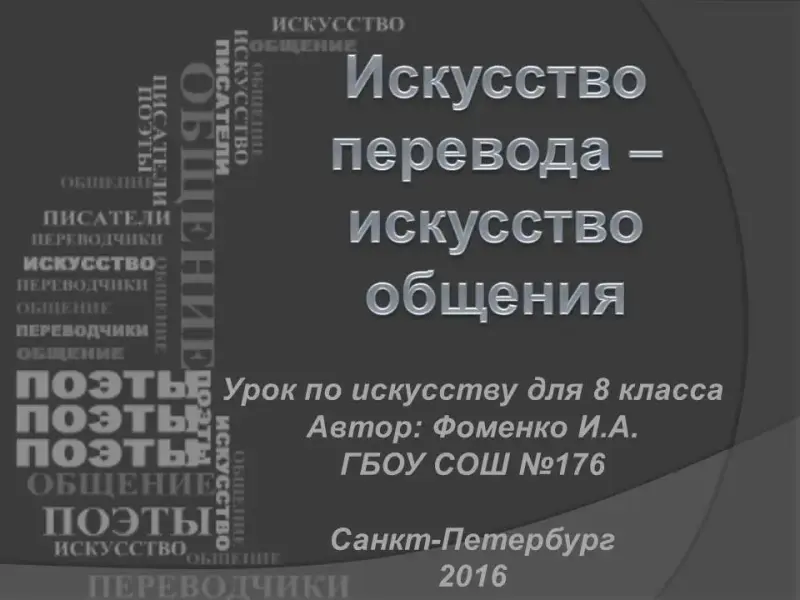 Урок искусства "Искусство художественного перевода – искусство общения". 8-й класс