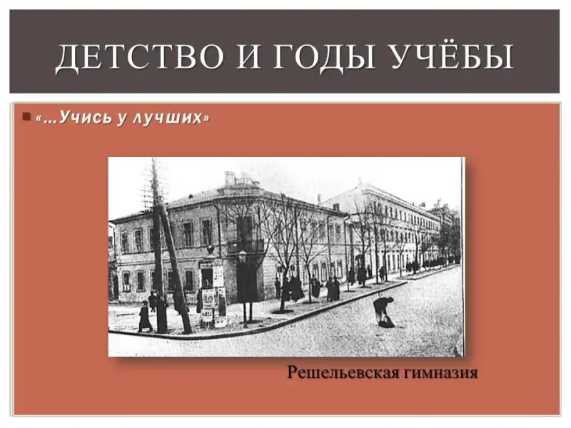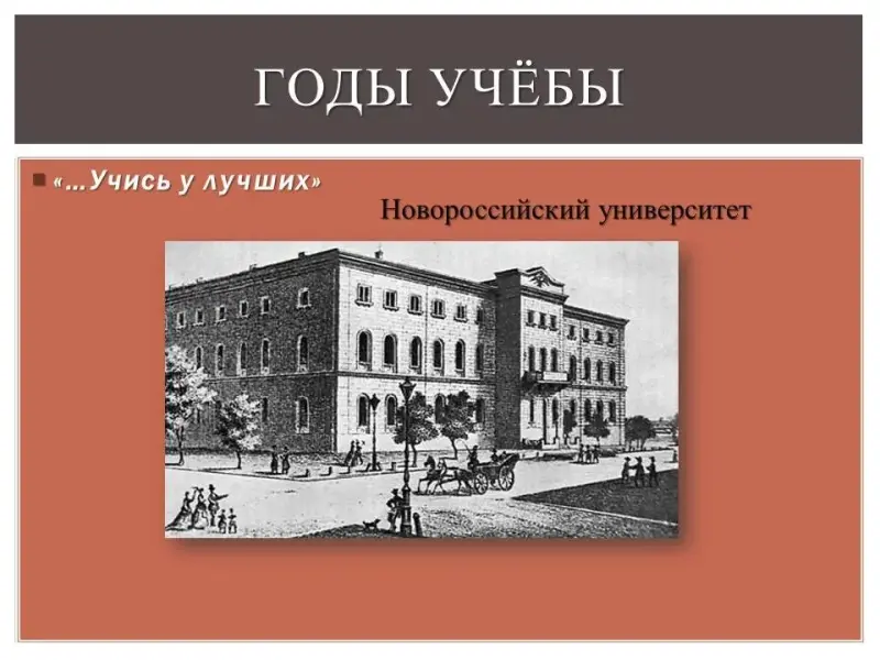 Получив начальное образование дома, Николай три года учился в Тираспольском уездном училище. Нужно было думать о дальнейшем образовании, но в Тирасполе своей гимназии не было. Из учебных заведений южных городов славилась гимназия в Одессе. Сюда и поступил учиться Николай. Гимназия эта была привилегированным учебным заведением. Здесь ученики получали общее образование, необходимое для поступления в университет. В гимназии естественным наукам уделялось мало внимания. Химию проходили только как один из разделов физики.