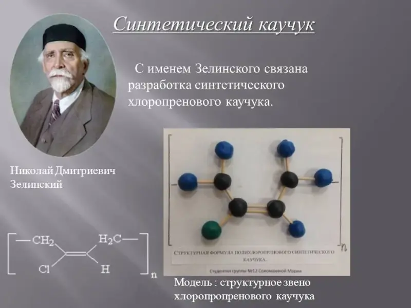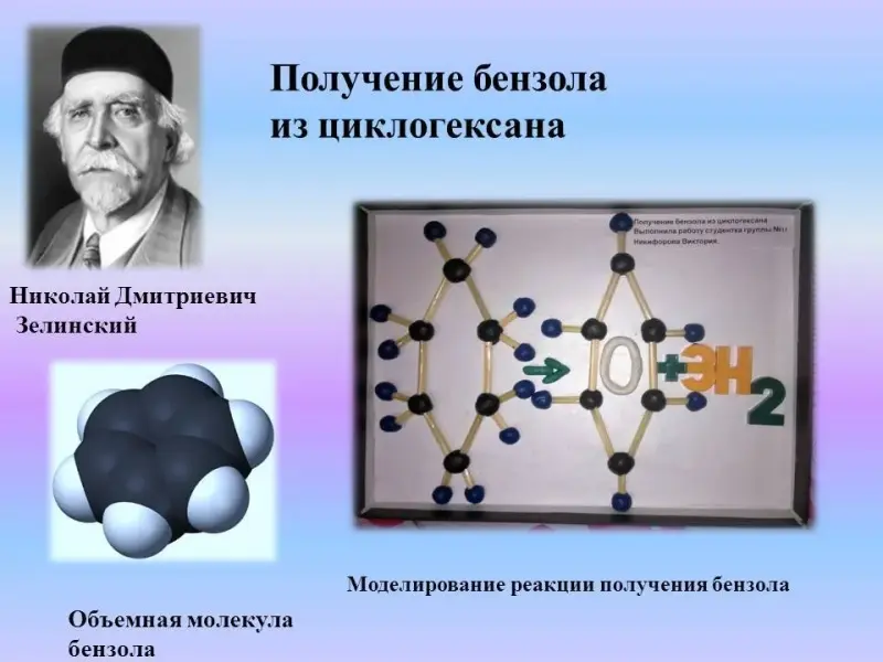 Смоделировано 46 молекул; синтезировано 8 реакций органических веществ открытых Н.Д. Зелинским; изображенных в виде схем, плакатов, аппликаций.