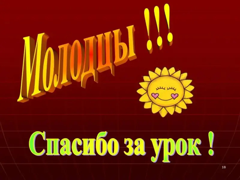 17. Спасибо за урок. Молодцы! (Слайд № 18)