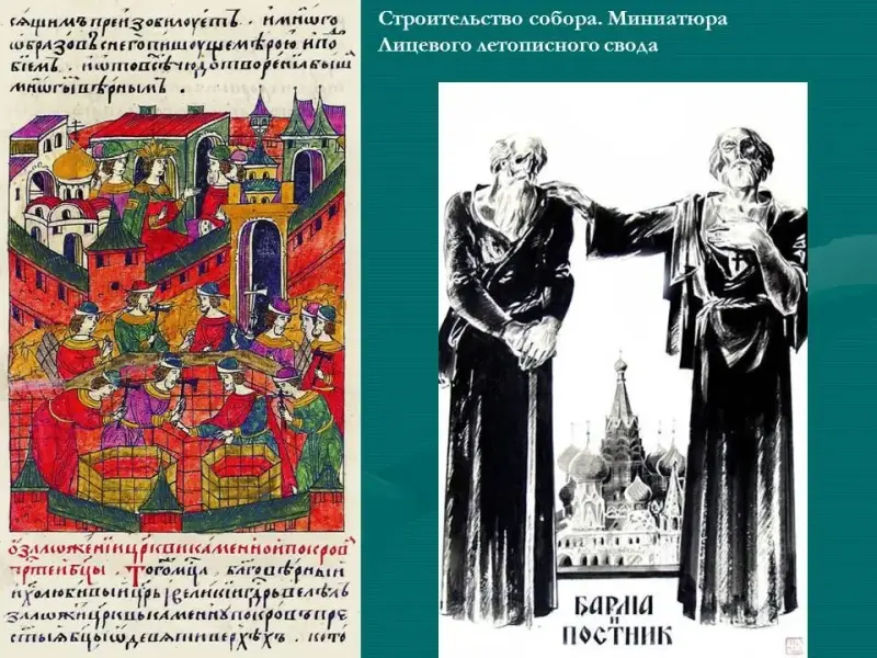 Архитектурный замысел собора принадлежал как архитекторам-строителям (Приложение 1. Рис.15) по прозвищу Барма и Постник (Яковлев), так и самому царю.