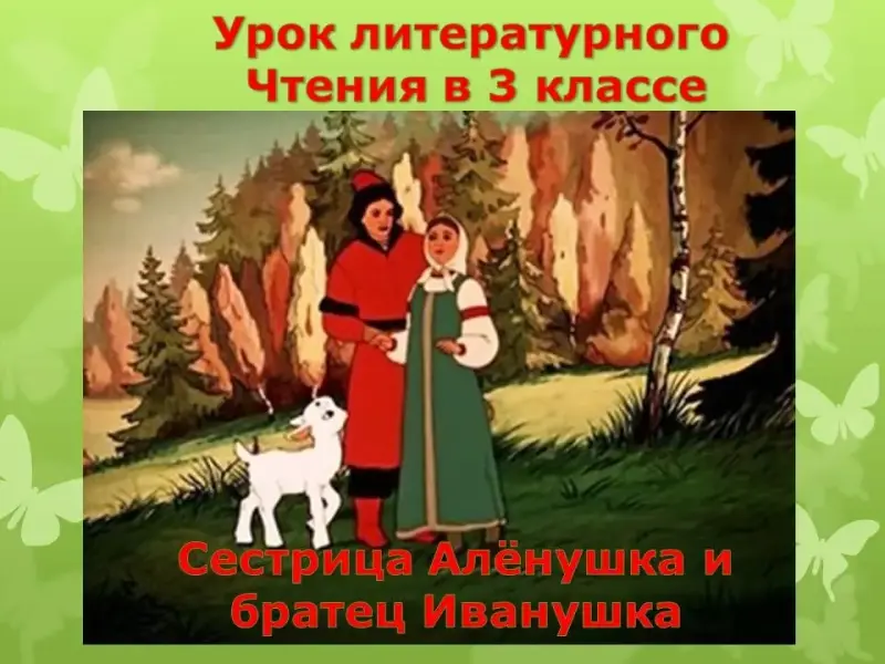 - Познакомить учащихся с русской народной сказкой "Сестрица Алёнушка и братец Иванушка"; познакомить детей с особенностями волшебной сказки.