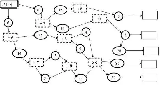 | 4. (44+33):7= | 9. 6z 10:2= | 14. 80:16z 9:15= |