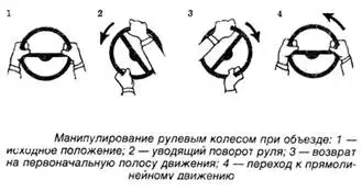 качение ведущих колес без пробуксовки. Быстро, но плавно поворачивать рулевое колесо влево (в сторону заноса), работая руками на боковом секторе, при этом передние управляемые колеса должны