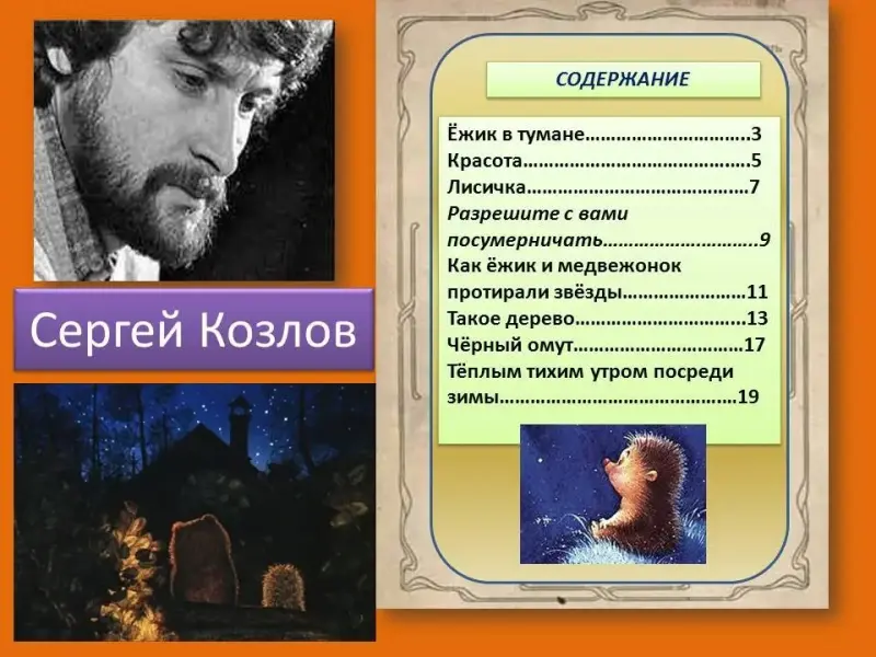 - Ребята, прочтете название произведений. Кто автор? - С.Г. Козлов.