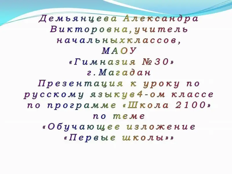 Урок по русскому языку на тему "Обучающее изложение «Первые школы»". 4-й класс