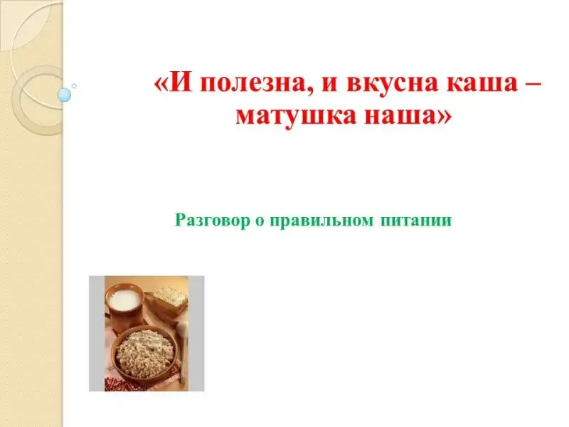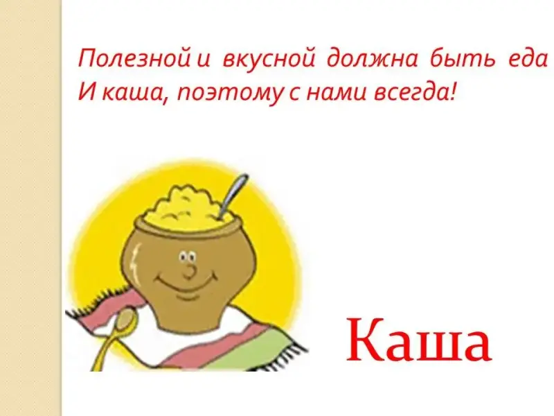 Учитель: Сегодня мы поговорим о кашах.
