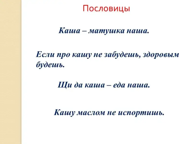 Учитель: Давайте вспомним пословицы о каше.