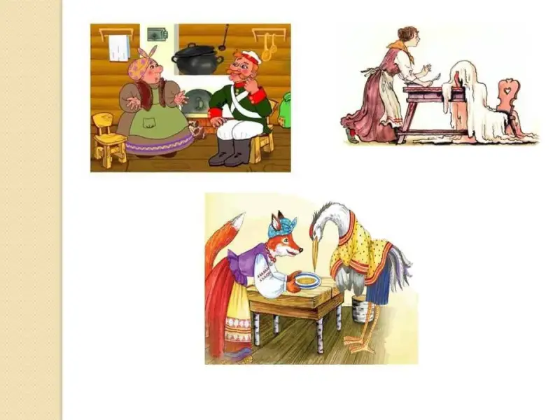 Идёт журавль на званый пир, а лиса наварила манной каши и размазала её по тарелке. Подала и потчует: