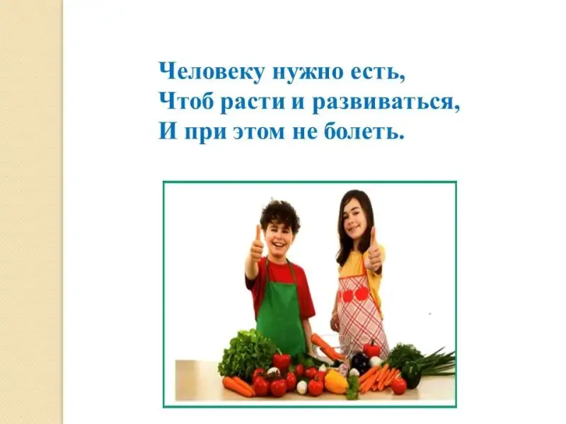 Сегодня мы поговорим с вами о полезной и вкусной пище. И начнём наш разговор с загадки.