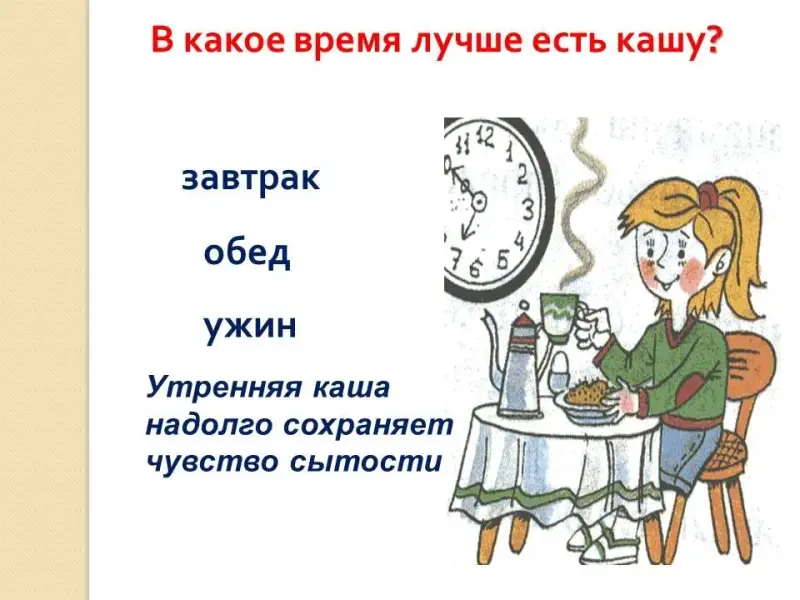 Учитель: В какое время дня лучше есть кашу?
