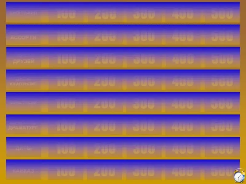 - Открывать вопросы можно в любой последовательности из любой темы, находящейся в игре.