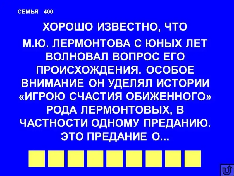 Внимание, вопрос: КАК НАЗЫВАЕТСЯ РОДОВОЕ ИМЕНИЕ ЛЕРМОНТОВА?