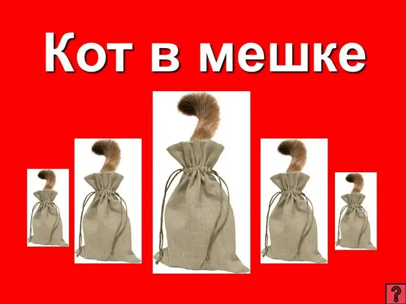 - Если команде выпал вопрос "Кот в мешке", то не открывая его, она должна передать вопрос команде-сопернику по своему усмотрению.