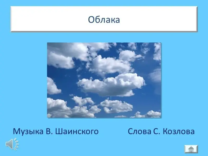 Учитель спрашивает детей, приходилось ли им наблюдать за цветом облаков в разное время суток? Например, какого цвета бывают облака рано утром, днём, на вечерней заре? Учащиеся делятся своими наблюдениями и выразительно исполняют песню В. Шаинского «Облака», которая является связующим звеном между «живописной» к «музыкальной» частями урока.